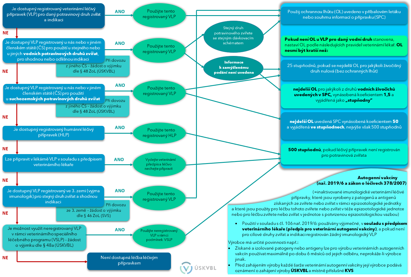 (rozhodování o výběru a použití léčiva v kaskádě (v tomto případě podle čl. 114 nař. 2019/6 v kombinaci s pravidly zákona o léčivech č. 378/2007 Sb.) provádí veterinární lékař na svou přímou osobní odpovědnost a zejména za účelem zamezení nepřijatelného utrpení zvířete.)